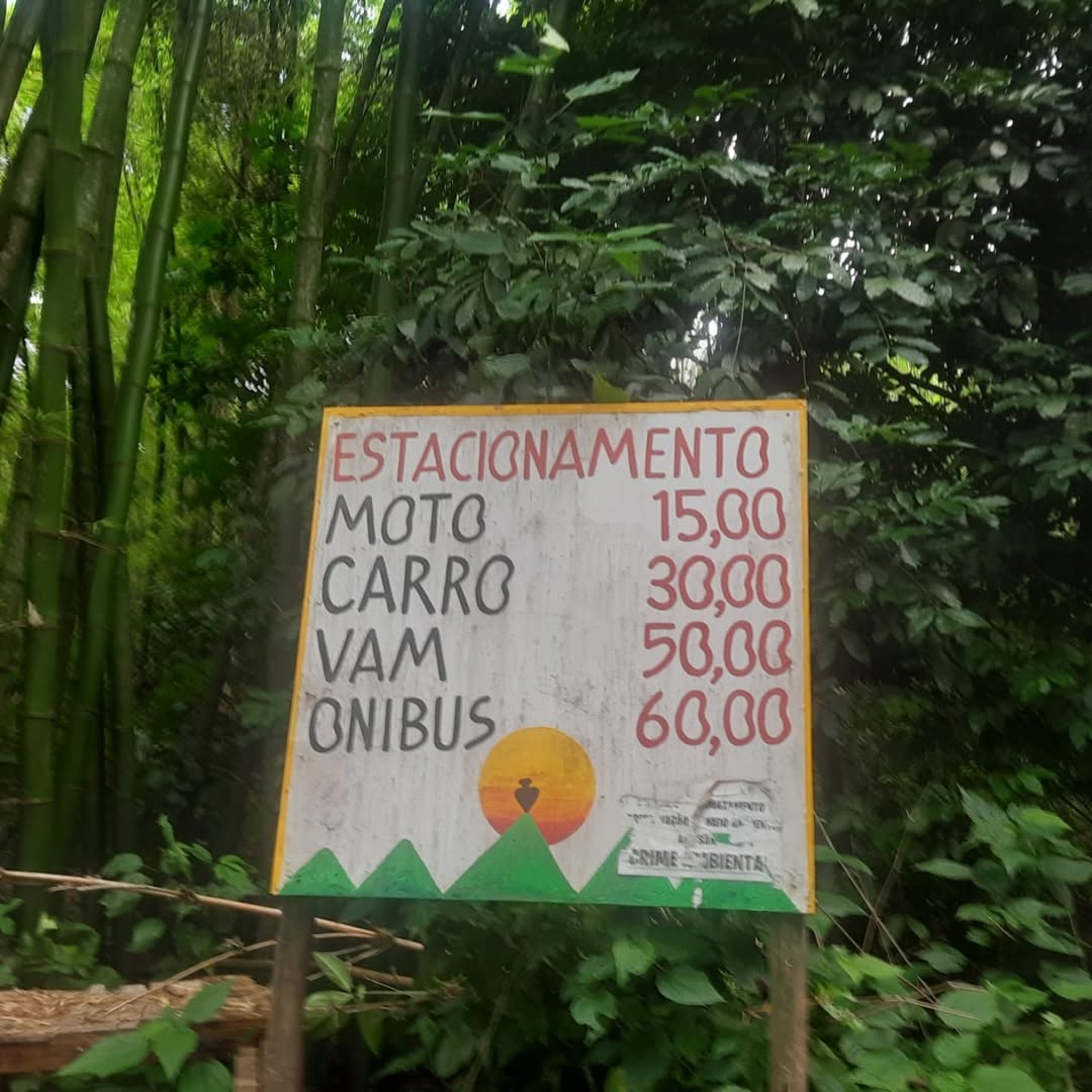 Há estacionamento próximo da entrada do Circuito das Águas. Os valores (no momento da postagem) são os seguintes: Moto R$15,00 / Carro R$30,00 / Van R$50,00 / Ônibus R$60,00.