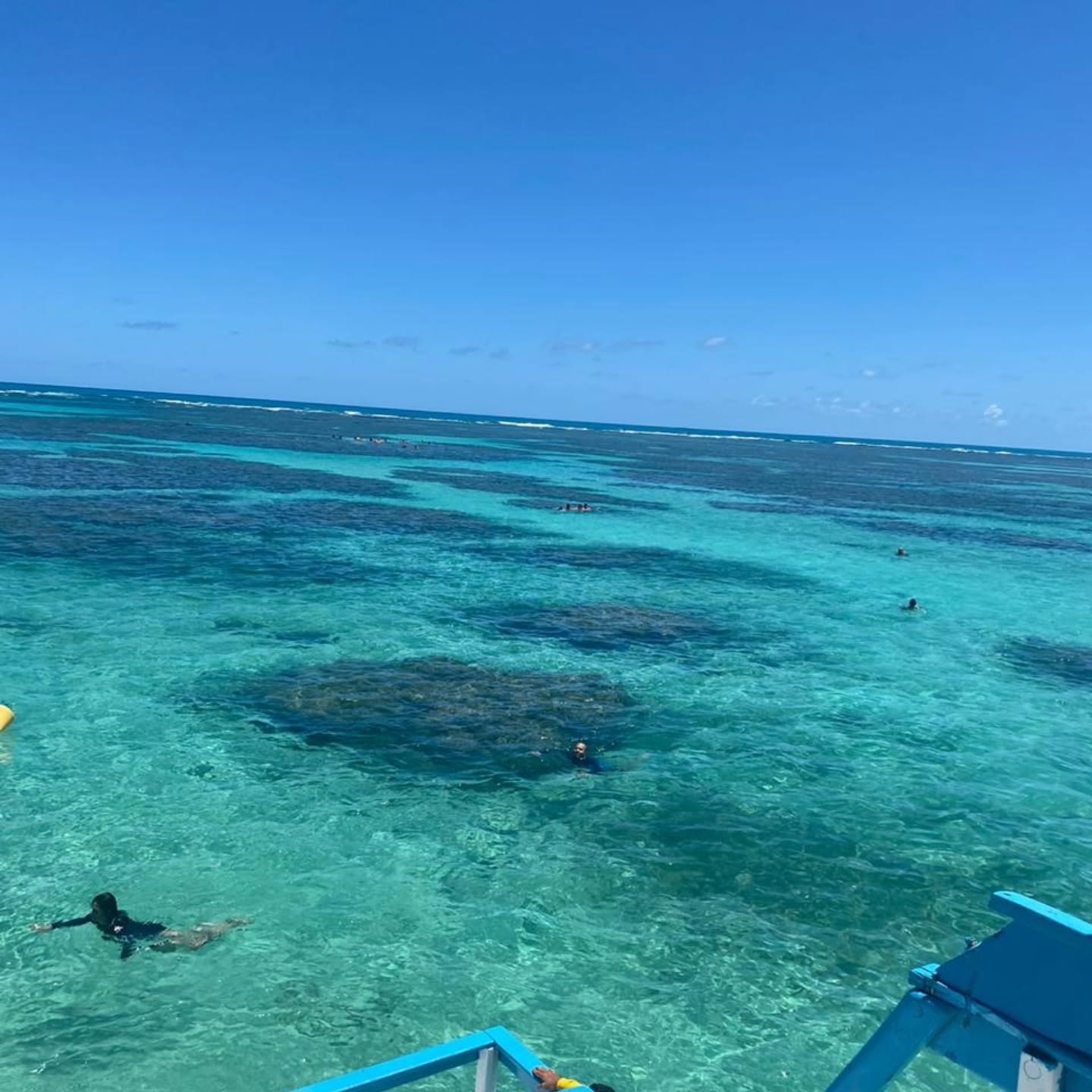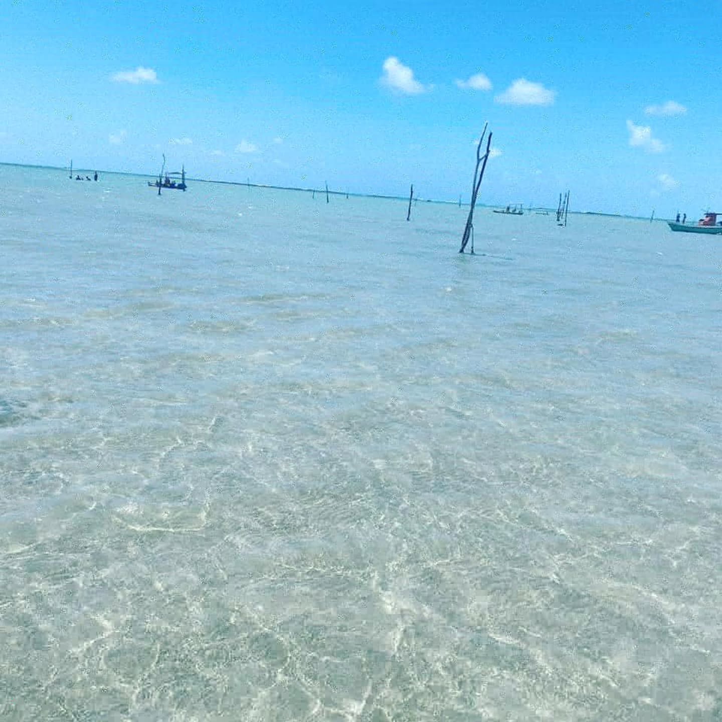 Peguei a lancha cedo. O mar estava liso, praticamente sem ondas. Durante o trajeto, já dava para ver manchas claras no meio do oceano — eram as piscinas aparecendo.