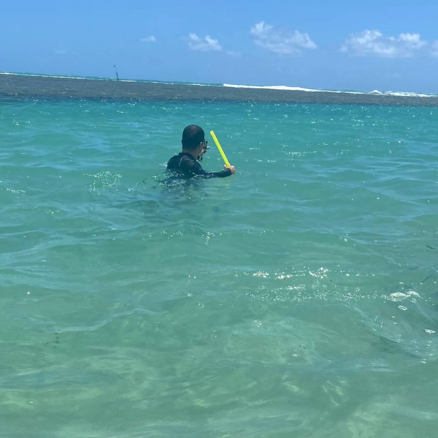 Peixes coloridos nadando ao redor, água morna e transparente, e uma tranquilidade absurda. Não existe barulho de cidade, não existe pressa, não existe preocupação. Só o som da água e do vento.
