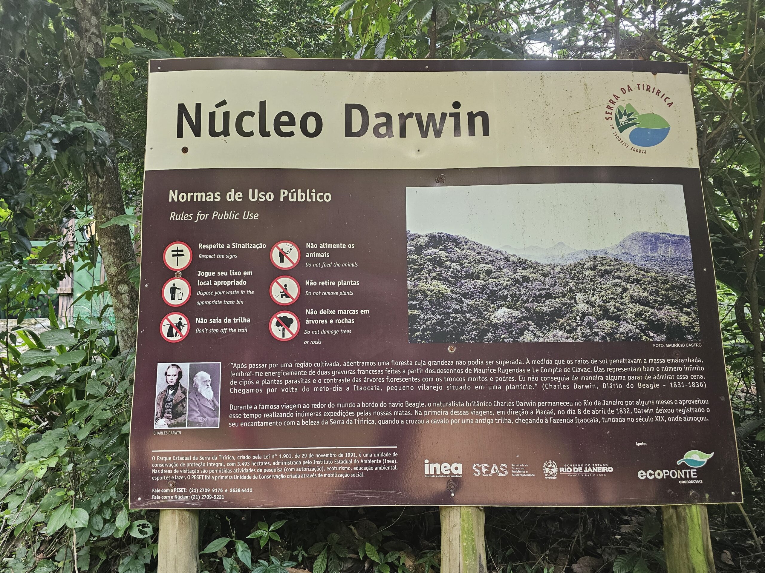 Foi nesse cenário que decidimos nos aventurar em família, percorrendo parte do Caminho de Darwin. A trilha, que conecta Itaocaia, em Maricá, ao bairro Engenho do Mato, em Niterói, é um convite à imersão na natureza e na história. Nosso destino era o Núcleo Darwin, ponto de referência para a preservação ambiental e o conhecimento científico na região.