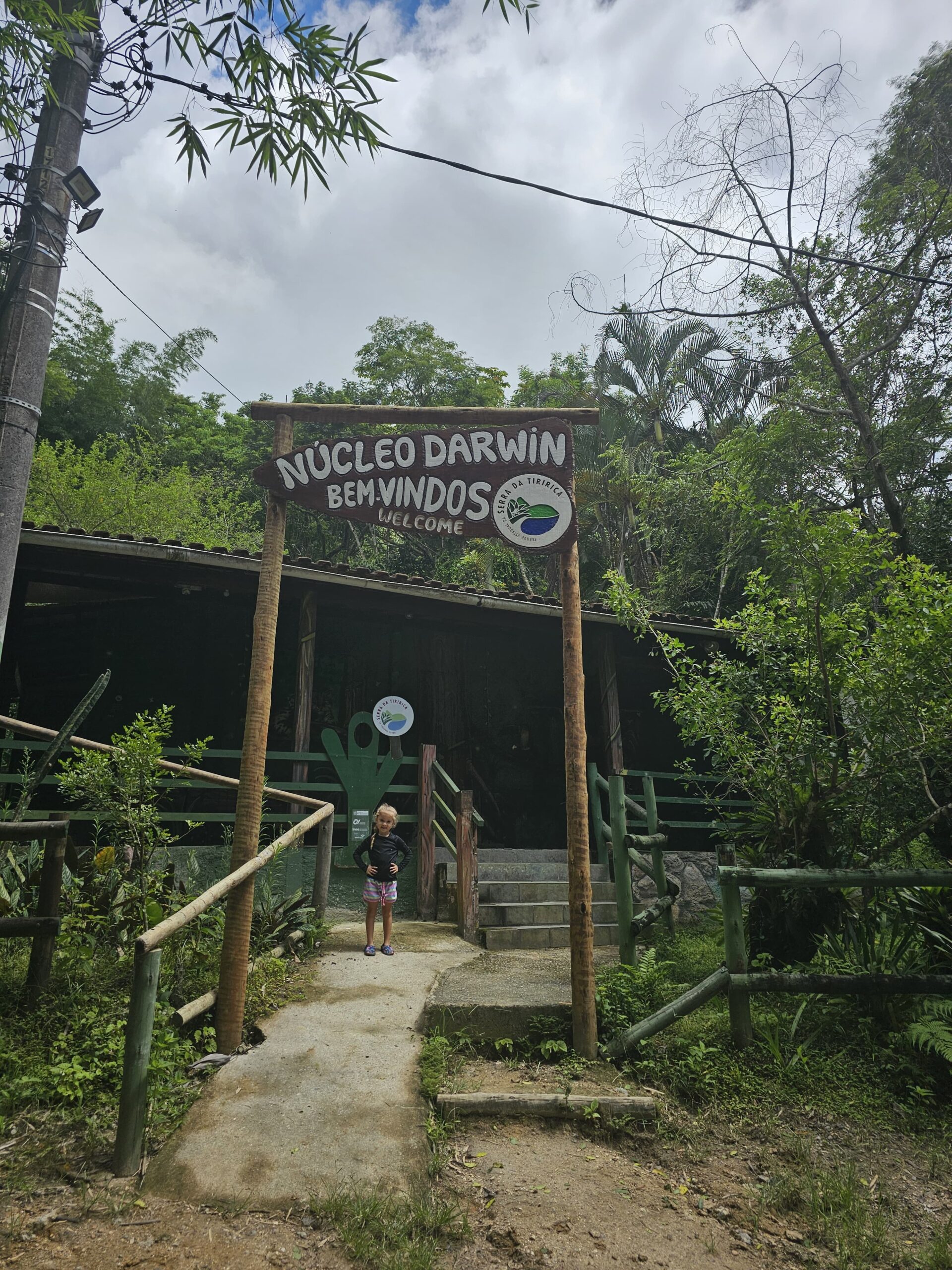 Nosso percurso nos levou até o Núcleo Darwin, onde planejávamos explorar mais sobre a rica fauna e flora locais. Contudo, ao chegarmos, encontramos o núcleo fechado. Apesar disso, a experiência não perdeu seu brilho: o contato direto com a natureza e a história da região tornou o passeio inesquecível.